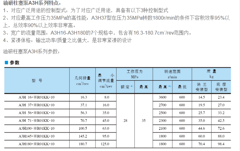 油研柱塞泵A3H系列
